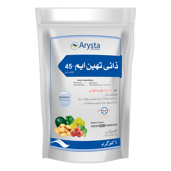 Dithane M-45 is a proven fungicide that provides effective protection to many cash crops like fruits and vegetables against early blight, late blight, and Downy Mildew. Due to its unique sticking ability ( due to Zinc Shells) on leaves, the efficacy of Dithane M-45 is not washed away by light rainfall or dew. It can be used at any stage of the crop with complete confidence.